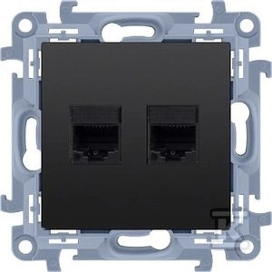 Gniazdo komputerowe podwójne RJ45 kategoria 6 (moduł), czarny mat, SIMON10 + Ramka 1-krotna - uniwersalna poziom i pion, czarny mat, SIMON10 o numerze katalogowym DMR934 w kategorii Łączniki i gniazda instalacyjne>Gniazda teleinformacyjne, multimedialne. Produkt wyprodukowany przez markę KONTAKT-SIMON, seria SIMON 10.