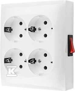 Gniazdo wtyczkowe natynkowe, Schuko, 4-krotne, z wbudowanym wyłącznikiem, IP20, 16 A, 250 V~, zaciski śrubowe, biały, AQUACLICK o numerze katalogowym ACGSZN4W1/11 w kategorii Gniazda natynkowe, Gniazda instalacyjne. Produkt wyprodukowany przez markę KONTAKT-SIMON, seria AQUACLICK.