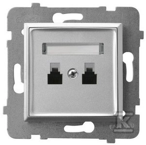 Gniazdo telefoniczne podwójne równoległe, srebro ARIA  o numerze katalogowym  GPT-2UR/M/18  w kategorii Gniazda teleinformacyjne, multimedialne, Łączniki i gniazda instalacyjne. Produkt wyprodukowany przez markę OSPEL, seria ARIA.
