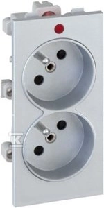 Gniazdo podwójne CIMA z uziemieniem 2-krotna 230V~ 16A, aluminium Connect o numerze katalogowym  S2/8 w kategorii Gniazda systemu 45x45, Osprzęt biurowy, akcesoria. Produkt wyprodukowany przez markę KONTAKT-SIMON, seria CONNECT.
