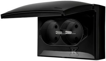 Gniazdo wtyczkowe natynkowe, podwójne kompaktowe z uziemieniem, klapka w kolorze pokrywy, IP44, 16 A, 250 V~, zaciski śrubowe, czarny, AQUACLICK o numerze katalogowym ACGZ2/49 w kategorii Gniazda natynkowe, Gniazda instalacyjne. Produkt wyprodukowany przez markę KONTAKT-SIMON, seria AQUACLICK.