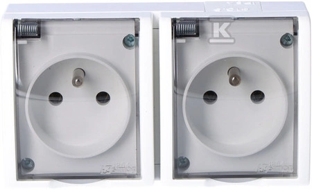 Gniazdo z uziemnieniem 2-krotne n/t IP54 AQGZ1-2/11a Aquarius biały, klapka dymna o numerze katalogowym AQGZ1-2/11A w kategorii Gniazda natynkowe, Gniazda instalacyjne. Produkt wyprodukowany przez markę KONTAKT-SIMON, seria AQUARIUS.
