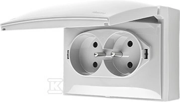 Gniazdo wtyczkowe natynkowe, podwójne kompaktowe z uziemieniem, klapka w kolorze pokrywy, z przesł. torów prąd., IP44, 16 A, 250 V~, zaciski śrubowe, biały, AQUACLICK o numerze katalogowym ACGZ2Z/11 w kategorii Gniazda natynkowe, Gniazda instalacyjne. Produkt wyprodukowany przez markę KONTAKT-SIMON, seria AQUACLICK.