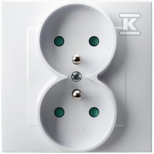 Gniazdo podwójne z uziemieniem z przesłonami torów prądowych, kompletne z ramką - BIAŁY o numerze katalogowym GP-2ZZP/00 w kategorii Gniazda instalacyjne>Gniazda podtynkowe. Produkt wyprodukowany przez markę OSPEL, seria SZAFIR.