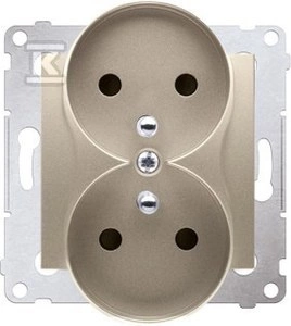 Gniazdo podwójne z uziemieniem przesłona styków, złoty mat Simon54 + Ramka 1-krotna uniwersalna IP20 / IP44, złoty mat Simon54 o numerze katalogowym DMS056 w kategorii Gniazda instalacyjne>Gniazda podtynkowe. Produkt wyprodukowany przez markę KONTAKT-SIMON, seria SIMON 54.