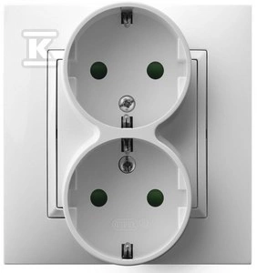 Gniazdo podwójne z uziemieniem schuko z przesłonami torów prądowych, kompletne z ramką, biały ARIA o numerze katalogowym GP-2USP/00 w kategorii Gniazda podtynkowe, Gniazda instalacyjne. Produkt wyprodukowany przez markę OSPEL, seria ARIA.