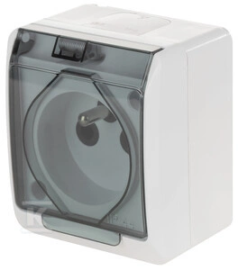 Gniazdo 1-krotne, natynkowe, IP44, białe, klapka dymna, HERMES o numerze katalogowym 0321-01 w kategorii Gniazda natynkowe, Gniazda instalacyjne. Produkt wyprodukowany przez markę ELEKTRO-PLAST NASIELSK, seria HERMES.
