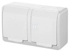 Gniazdo 2-krotne, natynkowe, IP44, białe, HERMES o numerze katalogowym 0322-02 w kategorii Gniazda natynkowe, Gniazda instalacyjne. Produkt wyprodukowany przez markę ELEKTRO-PLAST NASIELSK, seria HERMES.