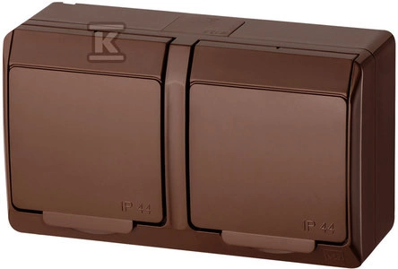 Gniazdo 2-krotne, natynkowe, IP44, brąz, HERMES o numerze katalogowym 0322-06 w kategorii Gniazda natynkowe, Gniazda instalacyjne. Produkt wyprodukowany przez markę ELEKTRO-PLAST NASIELSK, seria HERMES.
