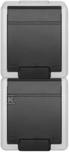 Gniazdo natynkowe N/T, podwójne pionowe z uziemieniem IP55, szary AQUANT 2K o numerze katalogowym 5052-10 w kategorii Gniazda instalacyjne>Gniazda natynkowe. Produkt wyprodukowany przez markę ELEKTRO-PLAST NASIELSK, seria AQUANT 2K IP55.