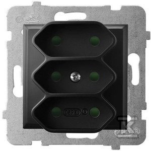 Gniazdo potrójne EURO z przesłonami torów prądowych, czarny metalik ARIA o numerze katalogowym GP-3UP/M/33 w kategorii Gniazda podtynkowe, Gniazda instalacyjne. Produkt wyprodukowany przez markę OSPEL, seria ARIA.