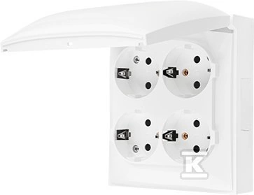 Gniazdo wtyczkowe natynkowe Schuko 4-krotne, klapka w kolorze pokrywy, z przesłonami torów prądowych, IP44, 16 A, 250 V~, szybkozłącza, biały, AQUACLICK o numerze katalogowym ACGSZ4CZ/11 w kategorii Gniazda natynkowe, Gniazda instalacyjne. Produkt wyprodukowany przez markę KONTAKT-SIMON, seria AQUACLICK.