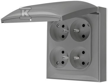 Gniazdo wtyczkowe natynkowe, 4-krotne z uziemieniem, klapka w kolorze pokrywy, IP44, 16 A, 250 V~, zaciski śrubowe, szary, AQUACLICK o numerze katalogowym ACGZ4/16 w kategorii Gniazda natynkowe, Gniazda instalacyjne. Produkt wyprodukowany przez markę KONTAKT-SIMON, seria AQUACLICK.