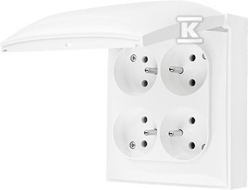 Gniazdo wtyczkowe natynkowe, 4-krotne z uziemieniem, klapka w kolorze pokrywy, z przesł. torów prąd., IP44, 16 A, 250 V~, szybkozłącza, biały, AQUACLICK o numerze katalogowym ACGZ4CZ/11 w kategorii Gniazda natynkowe, Gniazda instalacyjne. Produkt wyprodukowany przez markę KONTAKT-SIMON, seria AQUACLICK.