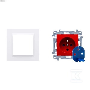 Gniazdo DATA z kluczem uprawniającym (moduł) 16A, 250V~, zaciski śrubowr czerwony Simon10 + Ramka 1-krotna - uniwersalna poziom i pion, biały Simon10 o numerze katalogowym DLG953 w kategorii Gniazda instalacyjne>Gniazda podtynkowe. Produkt wyprodukowany przez markę KONTAKT-SIMON, seria SIMON 10.