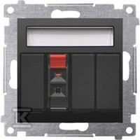 Gniazdo głośnikowe 1-krotne z polem opisowym (moduł). Przekrój przewodów dla wejścia i wyjścia 2,5 mm2, czarny mat Simon54 o numerze katalogowym DGL31.01/49 w kategorii Gniazda głośnikowe, Łączniki i gniazda instalacyjne. Produkt wyprodukowany przez markę KONTAKT-SIMON, seria SIMON 54.