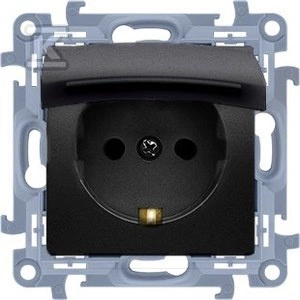 Gniazdo wtyczkowe Schuko do wersji IP44 z uszczelką z przesłonami, klapka w kolorze pokrywy (moduł) 16A, 250V~, zaciski śrubowe, czarny mat, SIMON10 o numerze katalogowym CGSZ1BZ.01/49 w kategorii Gniazda podtynkowe, Gniazda instalacyjne. Produkt wyprodukowany przez markę KONTAKT-SIMON, seria SIMON 10.