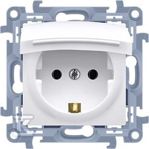 Gniazdo wtyczkowe Schuko do wersji IP44 z uszczelką z przesłonami torów prądowych - klapka w kolorze pokrywy (moduł) 16 A, 250 V~, zaciski śrubowe , biały Simon10 o numerze katalogowym CGSZ1BZ.01/11 w kategorii Gniazda podtynkowe, Gniazda instalacyjne. Produkt wyprodukowany przez markę KONTAKT-SIMON, seria SIMON 10.