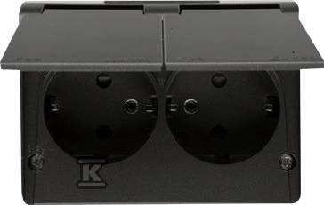 Gniazdo podwójne Schuko natynkowe bryzgoszczelne IP44 z przesłonami wersja skandynawska 16A, 250V~, zaciski śrubowe, czarny mat Simon54 o numerze katalogowym EGSZ2NZB/49 w kategorii Gniazda podtynkowe, Gniazda instalacyjne. Produkt wyprodukowany przez markę KONTAKT-SIMON, seria SIMON 54.