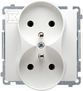 Gniazdo z uziemnieniem podwójne z przesłonami BMGZ2MZ.01/11 Basic moduł biały o numerze katalogowym BMGZ2MZ.01/11 w kategorii Gniazda podtynkowe, Gniazda instalacyjne. Produkt wyprodukowany przez markę KONTAKT-SIMON, seria BASIC MODUŁ.