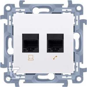Gniazdo RJ45 kat. 6 + gniazdo telefoniczne RJ12 (moduł) , biały Simon10 o numerze katalogowym C6T.01/11 w kategorii Gniazda teleinformacyjne, multimedialne, Łączniki i gniazda instalacyjne. Produkt wyprodukowany przez markę KONTAKT-SIMON, seria SIMON 10.
