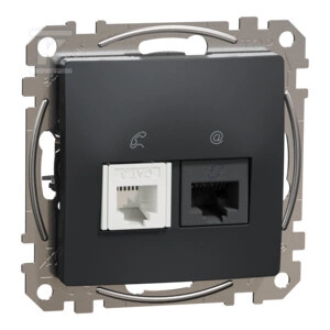 Gniazdo komputerowo-telefoniczne (RJ45 kat.6 UTP + RJ11), czarny antracyt SEDNA DESIGN  o numerze katalogowym  SDD114468  w kategorii Gniazda teleinformacyjne, multimedialne, Łączniki i gniazda instalacyjne. Produkt wyprodukowany przez markę SCHNEIDER ELECTRIC, seria SEDNA DESIGN.