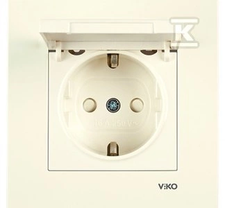 Gniazdo SCHUKO z klapką z przesłonami styków KARRE krem o numerze katalogowym 90963712 w kategorii Gniazda podtynkowe, Gniazda instalacyjne. Produkt wyprodukowany przez markę PANASONIC, seria KARRE.