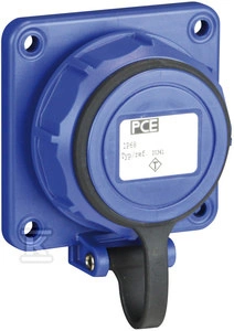 Gniazdo tablicowe jednofazowe NAUTILUS 10/16A 2 P+Z 230V z bolcem z elastycznym połączeniem pokrywy, kołnierz 75x75 IP67/68 o numerze katalogowym 20341-8B w kategorii Gniazda tablicowe, Gniazda siłowe. Produkt wyprodukowany przez markę PCE, seria NAUTILUS.