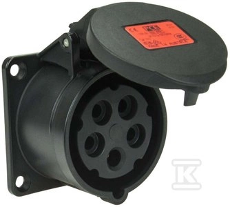 Gniazdo tablicowe proste 32A 3P+Z+N 400V 70x70mm CZARNE IP44/54 o numerze katalogowym 325-6X w kategorii Gniazda tablicowe, Gniazda siłowe. Produkt wyprodukowany przez markę PCE.