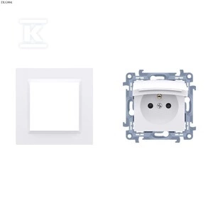 Gniazdo wtyczkowe do wersji IP44 z uszczelką z przesłonami torów prądowych - klapka w kolorze pokrywy (moduł) 16 A, 250 V~, zaciski śrubowe, biały Simon10 + Ramka 1-krotna - uniwersalna poziom i pion, biały Simon10 o numerze katalogowym DLG994 w kategorii Gniazda instalacyjne>Gniazda podtynkowe. Produkt wyprodukowany przez markę KONTAKT-SIMON, seria SIMON 10.