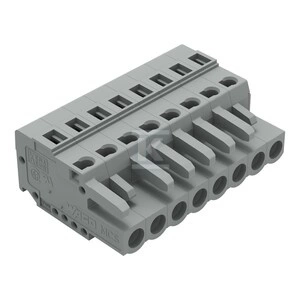 Gniazdo 1-przewodowe, CAGE CLAMP®, 2,5 mm2, raster 5 mm, 8-biegunowe ze zintegrowaną ścianką końcową, 2,50 mm2, szary o numerze katalogowym 231-108/102-000 w kategorii Niesklasyfikowane>Pozostałe. Produkt wyprodukowany przez markę WAGO, seria 231.
