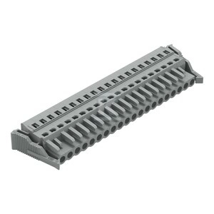 Gniazdo 1-przewodowe, CAGE CLAMP®, 2,5 mm2, raster 5 mm, 20-biegunowe boczne zaczepy ryglujące, 2,50 mm2, szary o numerze katalogowym 231-120/037-000 w kategorii Niesklasyfikowane>Pozostałe. Produkt wyprodukowany przez markę WAGO, seria 231.