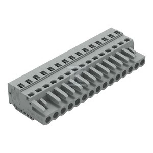 Gniazdo 1-przewodowe, CAGE CLAMP®, 2,5 mm2, raster 5 mm, 15-biegunowe ze zintegrowaną ścianką końcową, 2,50 mm2, szary o numerze katalogowym 231-115/102-000 w kategorii Niesklasyfikowane>Pozostałe. Produkt wyprodukowany przez markę WAGO, seria 231.