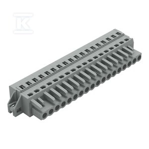 Gniazdo 1-przewodowe, CAGE CLAMP®, 2,5 mm2, raster 5 mm, 18-biegunowe kołnierz mocujący, 2,50 mm2, szary o numerze katalogowym 231-118/031-000 w kategorii Niesklasyfikowane>Pozostałe. Produkt wyprodukowany przez markę WAGO, seria 231.