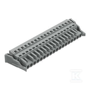Gniazdo 1-przewodowe, CAGE CLAMP®, 2,5 mm2, raster 5 mm, 18-biegunowe boczne zaczepy ryglujące, 2,50 mm2, szary o numerze katalogowym 231-118/037-000 w kategorii Niesklasyfikowane>Pozostałe. Produkt wyprodukowany przez markę WAGO, seria 231.