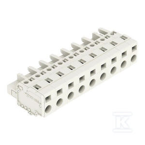 Gniazdo 1-przewodowe, CAGE CLAMP®, 2,5 mm2, raster 7,5 mm, 9-biegunowe 100% ochrona przed błędnym połączeniem, stopki zatrzaskowe, 2,50 mm2, jasnoszary o numerze katalogowym 721-209/008-000 w kategorii Niesklasyfikowane>Pozostałe. Produkt wyprodukowany przez markę WAGO, seria 721.