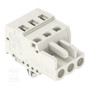Gniazdo 1-przewodowe, CAGE CLAMP®, 2,5 mm2, raster 5 mm, 3-biegunowe 100% ochrona przed błędnym połączeniem, stopki zatrzaskowe, 2,50 mm2, jasnoszary o numerze katalogowym 721-103/008-000 w kategorii Niesklasyfikowane>Pozostałe. Produkt wyprodukowany przez markę WAGO, seria 721.
