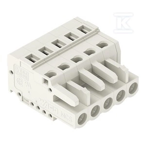 Gniazdo 1-przewodowe, CAGE CLAMP®, 2,5 mm2, raster 5 mm, 5-biegunowe 100% ochrona przed błędnym połączeniem, 2,50 mm2, jasnoszary o numerze katalogowym 721-105/026-000 w kategorii Niesklasyfikowane>Pozostałe. Produkt wyprodukowany przez markę WAGO, seria 721.