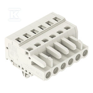 Gniazdo 1-przewodowe, CAGE CLAMP®, 2,5 mm2, raster 5 mm, 6-biegunowe 100% ochrona przed błędnym połączeniem, stopki zatrzaskowe, 2,50 mm2, jasnoszary o numerze katalogowym 721-106/008-000 w kategorii Niesklasyfikowane>Pozostałe. Produkt wyprodukowany przez markę WAGO, seria 721.