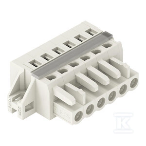 Gniazdo 1-przewodowe, CAGE CLAMP®, 2,5 mm2, raster 5 mm, 6-biegunowe 100% ochrona przed błędnym połączeniem, kołnierz mocujący, 2,50 mm2, jasnoszary o numerze katalogowym 721-106/027-000 w kategorii Niesklasyfikowane>Pozostałe. Produkt wyprodukowany przez markę WAGO, seria 721.