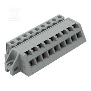 Gniazdo 1-przewodowe kątowe, CAGE CLAMP®, 2,5 mm2, raster 5 mm, 9-biegunowe kołnierz mocujący, TS 35/montaż na płycie, 2,50 mm2, szary o numerze katalogowym 731-509/031-000 w kategorii Niesklasyfikowane>Pozostałe. Produkt wyprodukowany przez markę WAGO, seria 731.