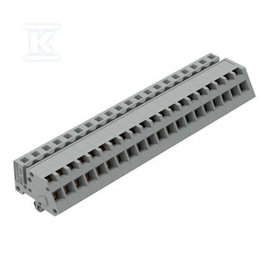 Gniazdo 1-przewodowe kątowe, CAGE CLAMP®, 2,5 mm2, raster 5 mm, 20-biegunowe stopki zatrzaskowe, 2,50 mm2, szary o numerze katalogowym 731-520/008-000 w kategorii Niesklasyfikowane>Pozostałe. Produkt wyprodukowany przez markę WAGO, seria 731.