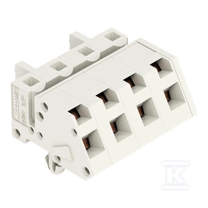 Gniazdo 1-przewodowe kątowe, CAGE CLAMP®, 2,5 mm2, raster 7,5 mm, 4-biegunowe 100% ochrona przed błędnym połączeniem, stopki zatrzaskowe, 2,50 mm2, jasnoszary o numerze katalogowym 721-334/008-000 w kategorii Niesklasyfikowane>Pozostałe. Produkt wyprodukowany przez markę WAGO, seria 721.