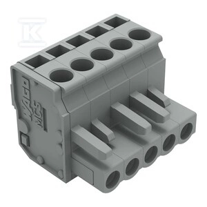 Gniazdo 1-przewodowe kątowe, CAGE CLAMP®, 2,5 mm2, raster 5 mm, 5-biegunowe 2,50 mm2, szary o numerze katalogowym 232-205/026-000 w kategorii Niesklasyfikowane>Pozostałe. Produkt wyprodukowany przez markę WAGO, seria 232.