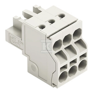 Gniazdo 2-przewodowe, Push-in CAGE CLAMP®, 2,5 mm2, raster 5 mm, 3-biegunowe 100% ochrona przed błędnym połączeniem, ze zintegrowaną ścianką końcową, 2,50 mm2, jasnoszary o numerze katalogowym 721-2103/026-000 w kategorii Niesklasyfikowane>Pozostałe. Produkt wyprodukowany przez markę WAGO, seria 721.