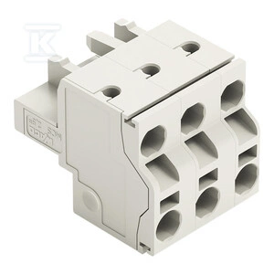 Gniazdo 2-przewodowe, Push-in CAGE CLAMP®, 2,5 mm2, raster 7,5 mm, 3-biegunowe 100% ochrona przed błędnym połączeniem, ze zintegrowaną ścianką końcową, 2,50 mm2, jasnoszary o numerze katalogowym 721-2203/026-000 w kategorii Niesklasyfikowane>Pozostałe. Produkt wyprodukowany przez markę WAGO, seria 721.