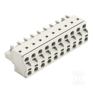 Gniazdo 2-przewodowe, Push-in CAGE CLAMP®, 2,5 mm2, raster 7,5 mm, 10-biegunowe 100% ochrona przed błędnym połączeniem, ze zintegrowaną ścianką końcową, 2,50 mm2, jasnoszary o numerze katalogowym 721-2210/026-000 w kategorii Niesklasyfikowane>Pozostałe. Produkt wyprodukowany przez markę WAGO, seria 721.