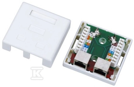 Gniazdo natynkowe STP kat.5e 2xRJ45 o numerze katalogowym GN004 w kategorii Gniazda systemu 45x45, Osprzęt biurowy, akcesoria. Produkt wyprodukowany przez markę ALANTEC, seria STP.
