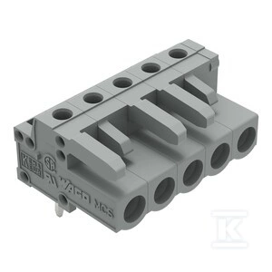 Gniazdo THT, konstrukcja kątowa, raster 5 mm, 5-biegunowe pin lutowniczy 0,6 x 1,0 mm, szary o numerze katalogowym 232-235 w kategorii Niesklasyfikowane>Pozostałe. Produkt wyprodukowany przez markę WAGO, seria 232.