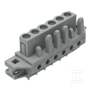 Gniazdo THT, konstrukcja prosta, raster 5 mm, 6-biegunowe kołnierz mocujący, pin lutowniczy 0,6 x 1,0 mm, szary o numerze katalogowym 232-136/031-000 w kategorii Niesklasyfikowane>Pozostałe. Produkt wyprodukowany przez markę WAGO, seria 232.